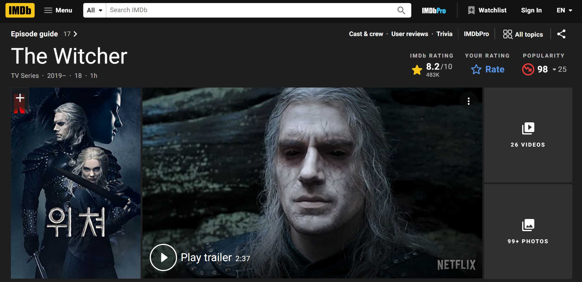 먼저 IMDb에 접속한 후 보고자 하는 영화를 검색해 들어간다