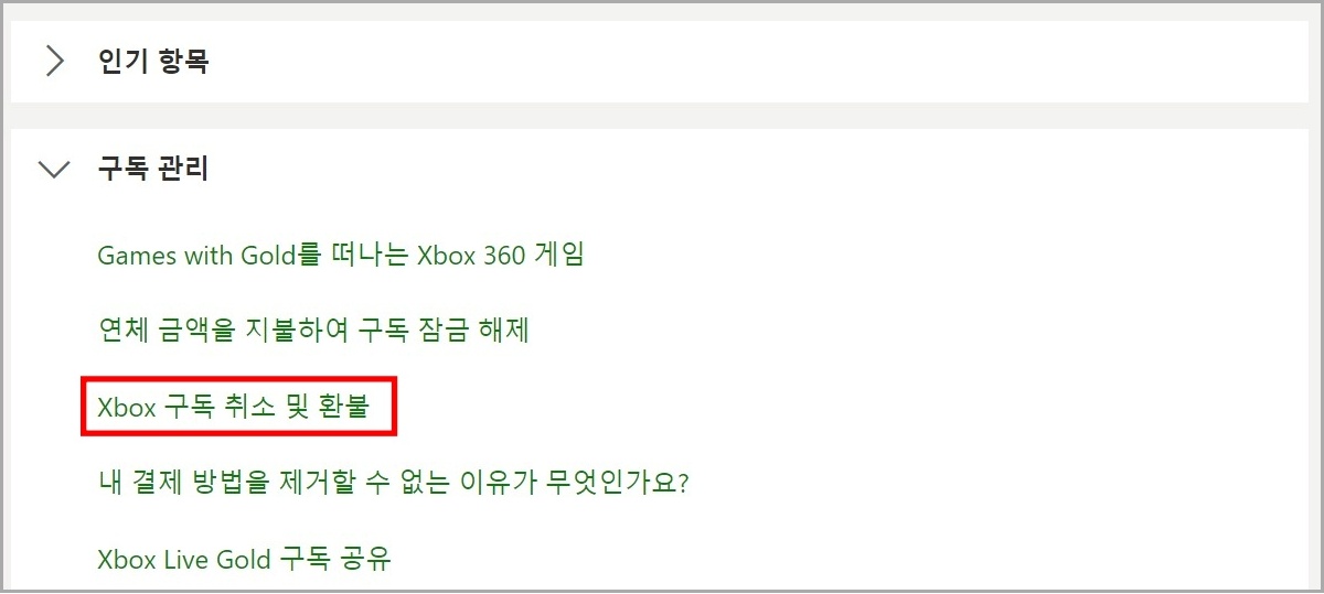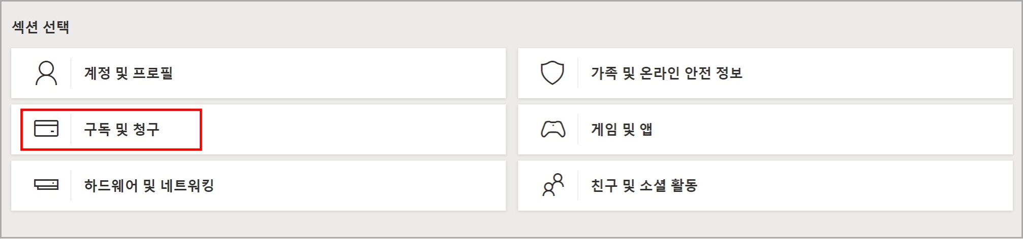 섹션 선택 > 구독 및 청구 > 구독 관리 > xbox 구독 취소 및 환불